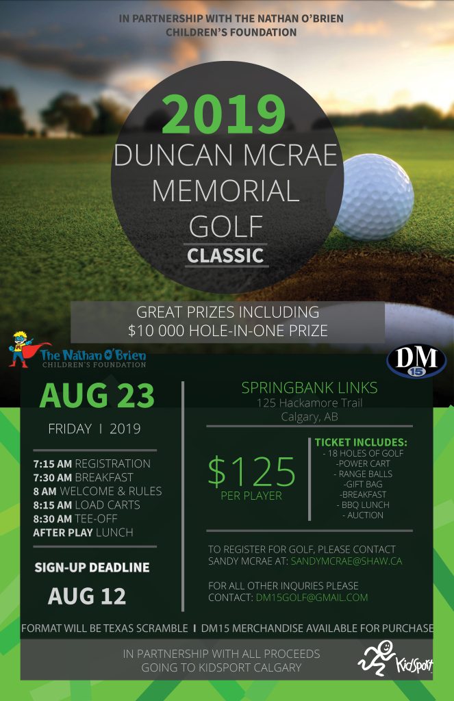 Duncan McRae is remembered as a 13-year-old boy who loved life. This year we are partnering up with his parents Sandy & Alisson McRae and their daughter Taylor to host a golf tournament and silent auction. All raise funds raised go directly to Kidsport. Come join us on August 23, 2019.